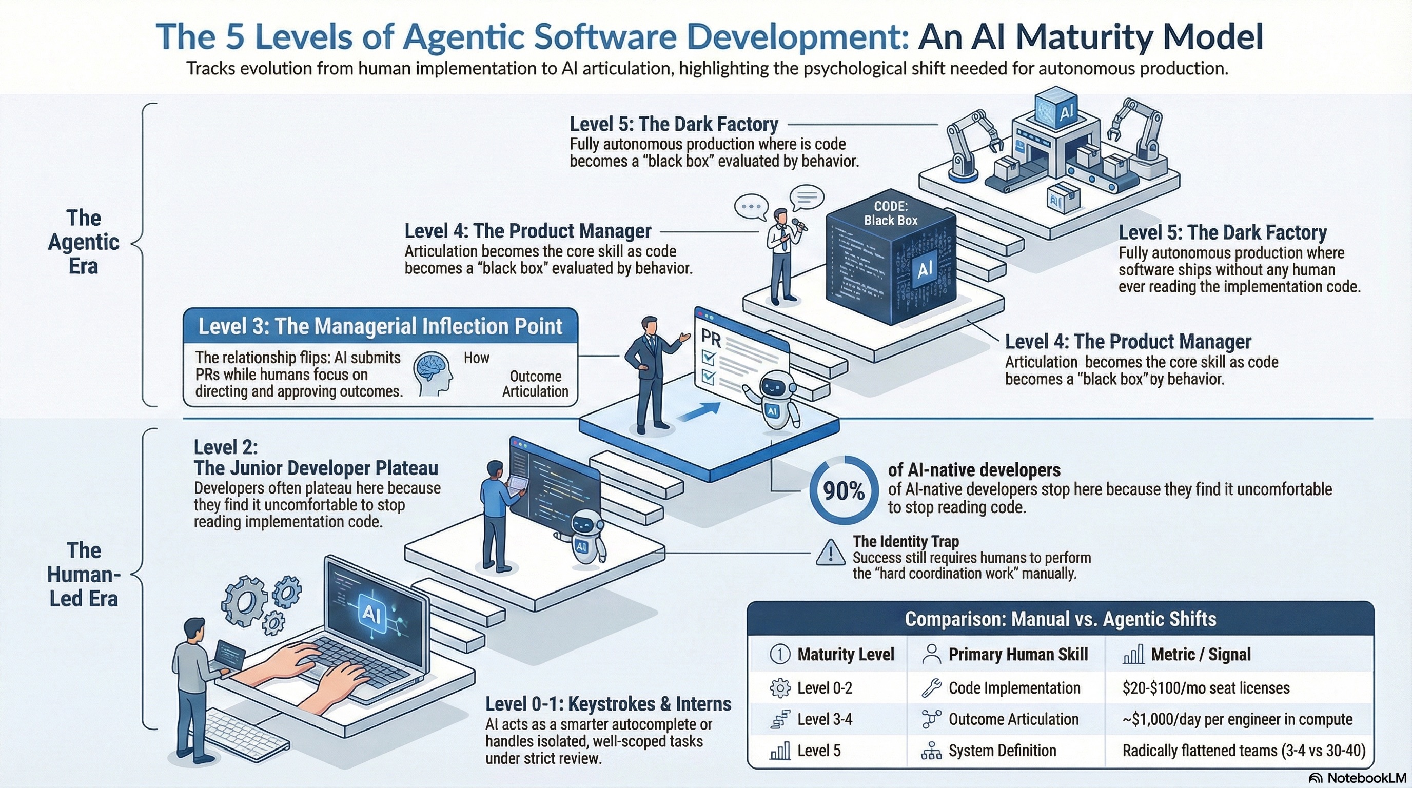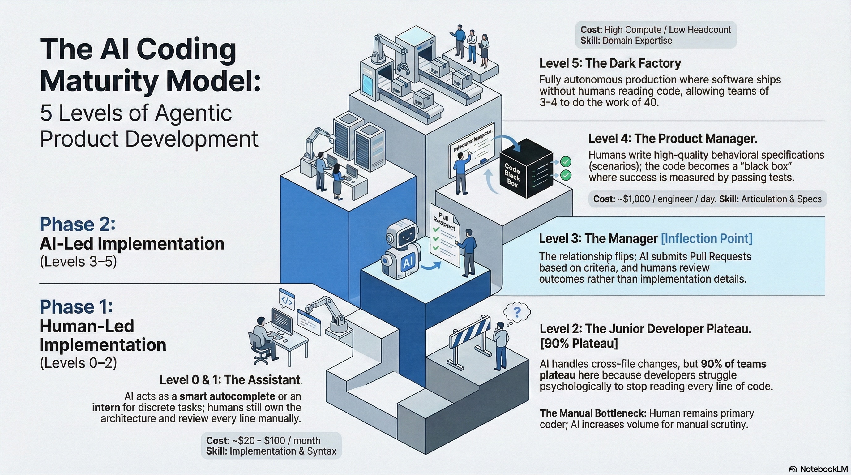 Diagnostic question: When a PR comes in from your AI agent, do your engineers read every line — or do they ask “does it meet the spec and pass the scenarios?”